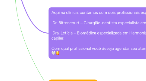 12. Aqui na clínica, contamos com dois profissionais especializados para te atender da melhor forma: Dr. Bittencourt – Cirurgião-dentista especialista em Harmonização facial e Cirurgias da face. Dra. Letícia – Biomédica especializada em Harmonização facial, Harmonização corporal e Tratamento capilar. Com qual profissional você deseja agendar seu atendimento? Me avise e já organizamos tudo para você! 🤍🥰