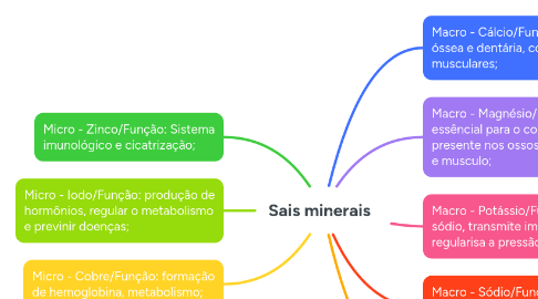 Este mapa mental mostra um resumo sobre os sais minerais;