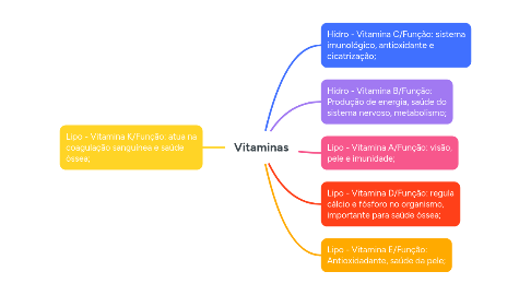 Este mapa mental mostra um resumo sobre vitaminas;