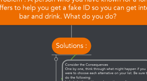 The Problem : A person who you have known for a long time offers to help you get a fake ID so you can get into a bar and drink. What do you do? por Mind Map: The Problem : A person who you have known for a long time offers to help you get a fake ID so you can get into a bar and drink. What do you do?