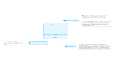 Dentro de las galaxias se pueden reconocer múltiples estructuras, entre las cuales aparecen: por Mind Map: Dentro de las galaxias se pueden reconocer múltiples estructuras, entre las cuales aparecen: