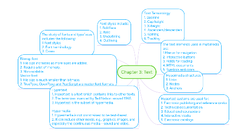 6. The text elements used in multimedia are: 1.Menus for navigation 2. Interactive buttons 3. Fields for reading 4. HTML documents 5. Symbols and icons