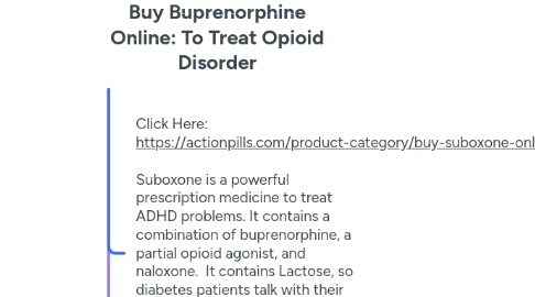 1. Click Here: https://actionpills.com/product-category/buy-suboxone-online/ Suboxone is a powerful prescription medicine to treat ADHD problems. It contains a combination of buprenorphine, a partial opioid agonist, and naloxone. It contains Lactose, so diabetes patients talk with their doctor before taking the suboxone. Pregnant women can not take suboxone because it may cause life-threatening withdrawal symptoms in the newborn.