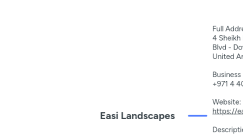 1. Full Address: 4 Sheikh Mohammed bin Rashid Blvd - Downtown Dubai - Dubai - United Arab Emirates Business Phone: +971 4 401 8531 Website: https://easilandscapes.ae/ Description: Easi-Landscapes is a leading landscaping company in Dubai creating luxury landscapes for our clients throughout Dubai, Abu Dhabi & UAE. Keywords: Landscaping Company Dubai