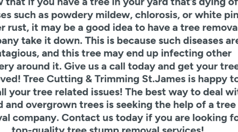 Tree Cutting & Trimming St.James Contact Address: 870 Middle Country Rd suite 1, St James, NY 11780 Phone: 631-635-7878 Website URL: http://www.branchingoutny.com/ About US: Welcome to Tree Cutting & Trimming St. James! Did you know that if you have a tree in your yard that’s dying of diseases such as powdery mildew, chlorosis, or white pine blister rust, it may be a good idea to have a tree removal company take it down. This is because such diseases are contagious, and this tree may end up infecting other greenery around it. Give us a call today and get your trees removed! Tree Cutting & Trimming St.James is happy to solve all your tree related issues! The best way to deal with dead and overgrown trees is seeking the help of a tree removal company. Contact us today if you are looking for top-quality tree stump removal services! Related Searches: Tree service | tree removal | tree trimming | tree pruning | stump grinding | branch trim | trim branch | affordable tree service | affordable tree service near me | best tree cutting | best tree cutting service | tree cutting company | tree removal company | tree cutting service | Suffolk County | NY. Additional Details Hours: Monday to Sunday 1 am–11:30 pm GMB Listing: https://maps.app.goo.gl/BQkbC73BExH373TM8
