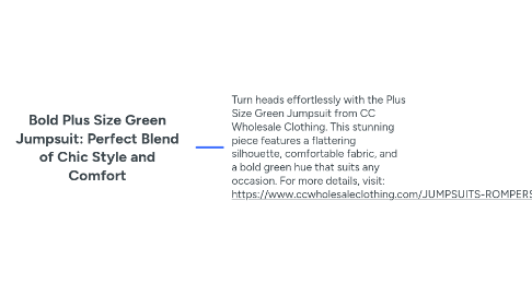Turn heads effortlessly with the Plus Size Green Jumpsuit from CC Wholesale Clothing. This stunning piece features a flattering silhouette, comfortable fabric, and a bold green hue that suits any occasion. For more details, visit: https://www.ccwholesaleclothing.com/JUMPSUITS-ROMPERS_c_480.html