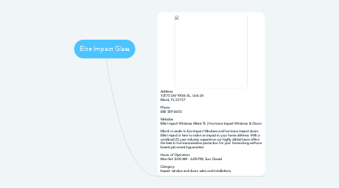 1. Address: 10775 SW 190th St., Unit 24 Miami, FL 33157 Phone: 888 509 8655 Website: Elite Impact Windows Miami FL | Hurricane Impact Windows & Doors Miami's Leader in Eco Impact Windows and hurricane impact doors. Elite Impact is here to make an impact in your home defense. With a combined 25 year industry experience our highly skilled team offers the best in hurricane window protection for your home along with our lowest price match guarantee. Hours of Operation: Mon-Sat: 8:00 AM - 6:00 PM, Sun: Closed Category: Impact window and doors sales and installations
