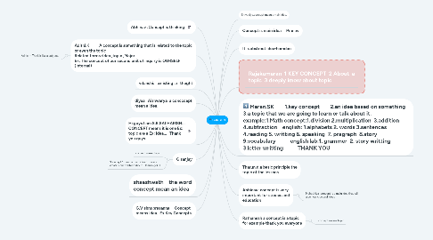 13. Maran.SK 1.key concept 2.an idea based on something 3.a topic that we are going to learn or talk about it. example:1.Math concept:1.division 2.multiplication 3.addition 4.subtraction english: 1.alphabets 2. words 3.sentences 4.reading 5. writting 6. speaking 7. pragraph 8.story 9.vocabulary english lab:1. grammer 2. story writting 3.letter writting THANK YOU