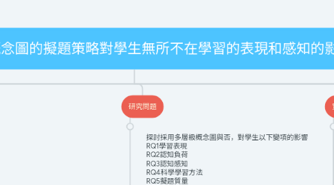 3.1. 探討採用多層級概念圖與否,對學生以下變項的影響 RQ1學習表現 RQ2認知負荷 RQ3認知感知 RQ4科學學習方法 RQ5擬題質量