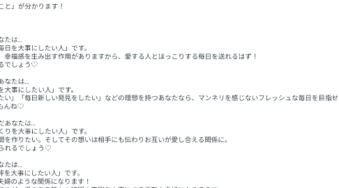 1.1. さて、申し遅れました 結婚相談所のツヴァイ明美です。 結婚心理テストいかがでしたか? 図星の方いたのではないでしょうか! 心理テストを受けていただいた方に限定で このあとのアンケート回答後に 明美から婚活成功のヒントをお届け♡ アンケートは3~5問で、 30秒で終わるので気軽に回答してください!