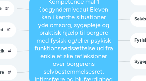 Kompetence mål 1 (begynderniveau) Eleven kan i kendte situationer yde omsorg, sygepleje og praktisk hjælp til borgere med fysisk og/eller psykisk funktionsnedsættelse ud fra enkle etiske refleksioner over borgerens selvbestemmelsesret, intimsfære og blufærdighed
