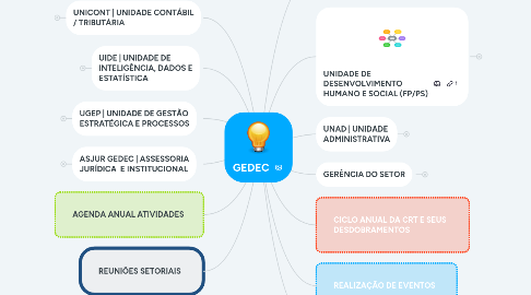 Mapa mental referente ao funcionamento da GEDEC e as principais atividades de suas Unidades.