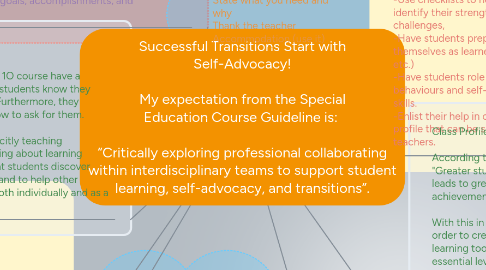 Successful Transitions Start with Self-Advocacy! My expectation from the Special Education Course Guideline is: “Critically exploring professional collaborating within interdisciplinary teams to support student learning, self-advocacy, and transitions”.