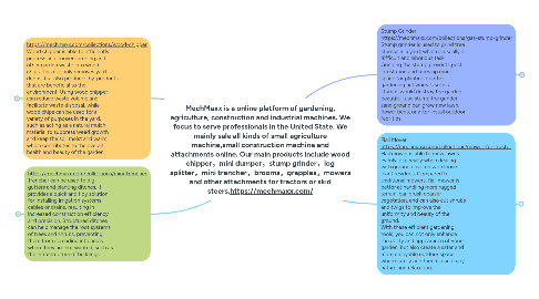 MechMaxx is a online platform of gardening, agriculture, construction and industrial machines. We focus to serve professionals in the United State. We mainly sale all kinds of small agriculture machine,small construction machine and attachments online. Our main products include wood chipper,mini dumper,stump grinder,log splitter,mini trencher,brooms,grapples,mowers and other attachments for tractors or skid steers.https://mechmaxx.com/