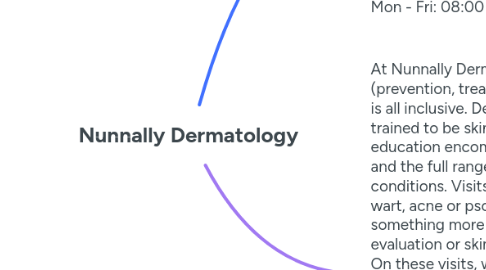 2. At Nunnally Dermatology, skin care (prevention, treatment, and repair) is all inclusive. Dermatologists are trained to be skin experts and their education encompasses all ages and the full range of skin conditions. Visits can be a single wart, acne or psoriasis, or something more serious like mole evaluation or skin cancer screening. On these visits, we encourage everyone to discuss all aspects of their skin care concerns. We advise on skin care whether it’s just sunscreen alone, acne treatment or more complicated skin rejuvenation procedures. At Nunnally Dermatology, we recommend yearly skin exams and during these visits we customize the skin care regimen best suited for your needs.