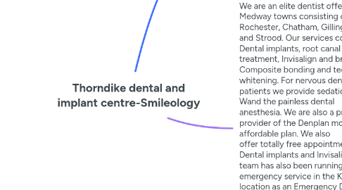 2. Thorndike Dental and Implant Centre is part of Smileology Group offering Dental services in Kent. We are an elite dentist offering Medway towns consisting of Rochester, Chatham, Gillingham and Strood. Our services consist of Dental implants, root canal treatment, Invisalign and braces, Composite bonding and teeth whitening. For nervous dental patients we provide sedation and Wand the painless dental anesthesia. We are also a premier provider of the Denplan month-to-month affordable plan. We also offer totally free appointment for Dental implants and Invisalign. Our team has also been running an emergency service in the Kent location as an Emergency Dentist for the past 12 years. We pride ourselves as an extremely knowledgeable team and have heavily invested in digital technology. In addition, we provide finance to assist spread your repayments over 24-36 months. Call us today to reserve an appointment on 01634817417