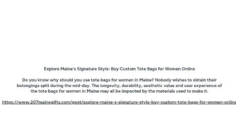 Explore Maine's Signature Style: Buy Custom Tote Bags for Women Online Do you know why should you use tote bags for women in Maine? Nobody wishes to obtain their belongings split during the mid-day. The longevity, durability, aesthetic value and user experience of the tote bags for women in Maine may all be impacted by the materials used to make it. https://www.207mainegifts.com/post/explore-maine-s-signature-style-buy-custom-tote-bags-for-women-online