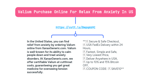 Valium can be purchased securely and discreetly through our secure online platform, which also offers dependable delivery options to guarantee your peace of mind. Venture out towards unwinding and tension help by requesting Valium online from XanaxGeneric.com today.