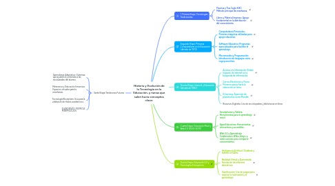 Historia y Evolución de la Tecnología en la Educación, y ramas que salen hacia conceptos clave: