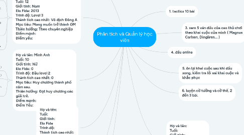 12. Họ và tên: Tuổi: Giới tính: Elo Fide Trình độ: Thành tích cao nhất: Mục tiêu: Điểm mạnh: Điểm yếu: