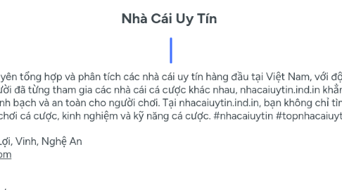 nhacaiuytin.ind.in là trang web chuyên tổng hợp và phân tích các nhà cái uy tín hàng đầu tại Việt Nam, với đội ngũ nghiên cứu chuyên sâu, nhà văn tốt cùng cộng sự là những người đã từng tham gia các nhà cái cá cược khác nhau, nhacaiuytin.ind.in khẳng định mang đến người chơi những nhà cái có độ uy tín cao, minh bạch và an toàn cho người chơi. Tại nhacaiuytin.ind.in, bạn không chỉ tìm thấy các nhà cái uy tín mà còn là bình luận xung quanh như các trò chơi cá cược, kinh nghiệm và kỹ năng cá cượ...