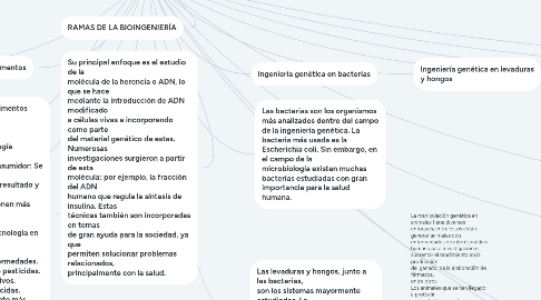 7. Su principal enfoque es el estudio de la molécula de la herencia o ADN, lo que se hace mediante la introducción de ADN modificado a células vivas e incorporando como parte del material genético de estas. Numerosas investigaciones surgieron a partir de esta molécula; por ejemplo, la fracción del ADN humano que regula la síntesis de insulina. Estas técnicas también son incorporadas en temas de gran ayuda para la sociedad, ya que permiten solucionar problemas relacionados, principalmente con la salud.
