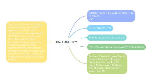 1. Description: 20 years of Michigan Divorce & Family Law litigation experience. The Tuke Firm uniquely offers customer friendly FLAT FEES on most case types. Esse Tuke is also Certified Domestic Mediator, utilizing her almost 2 decades of family expertise to bring resolutions to families and parties in conflict. How do I know if my case is a good fit? Schedule your FREE15 Call via our website.