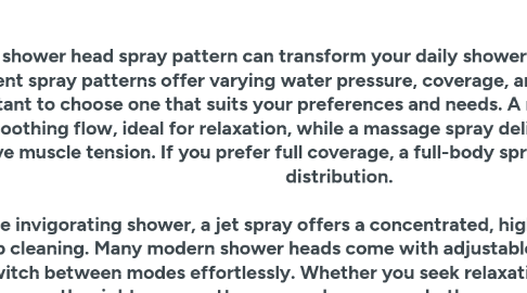 The right shower head spray pattern can transform your daily shower into a spa-like experience. Different spray patterns offer varying water pressure, coverage, and sensations, making it important to choose one that suits your preferences and needs. A rainfall spray provides a gentle, soothing flow, ideal for relaxation, while a massage spray delivers targeted pressure to relieve muscle tension. If you prefer full coverage, a full-body spray ensures even water distribution. For a more invigorating shower, a jet spray offers a concentrated, high-pressure stream, perfect for deep cleaning. Many modern shower heads come with adjustable spray settings, allowing you to switch between modes effortlessly. Whether you seek relaxation or efficiency, selecting the right spray pattern can enhance your bathroom experience. Discover the best shower head spray patterns for your needs: Choosing the Right Spray Patterns for Your Shower Head (https://goldbathroom.uk/blogs/news/choosing-the-right-spray-patterns-for-your-shower-head) Also explore our amazing products on our website - https://goldbathroom.uk/