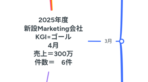 2025年度 新設Marketing会社 KGI=ゴール 4月 売上=300万 件数= 6件 作者: Mind Map: 2025年度 新設Marketing会社 KGI=ゴール 4月 売上=300万 件数=    6件